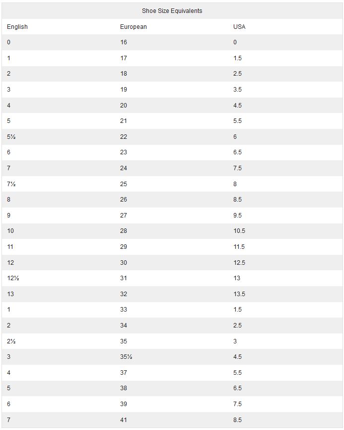 Sizes: 13 to 5. Show Size Guide (UK/Europe/USA)