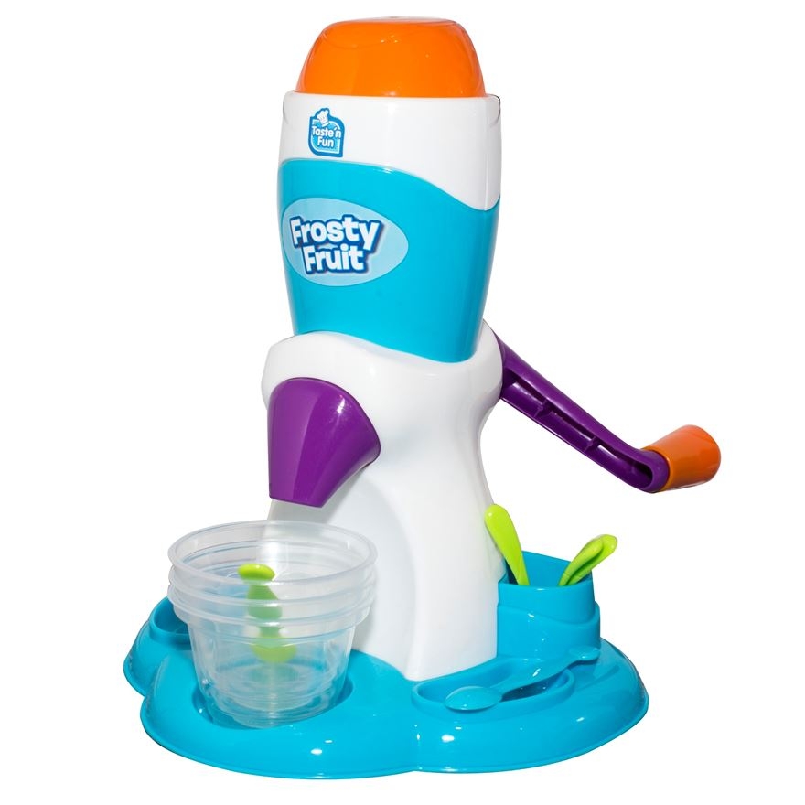 Easy to use. Create flavored sorbets just by taking frozen fruit and extruding it through the machine. Mix up fruits to make great flavored sorbets. Comes complete with cups, spoons and recipes.
