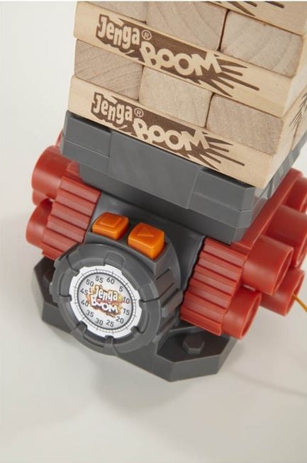 If you thought Jenga was intense, you haven't played anything like Jenga Boom. Now you're under more pressure than ever because you not only have to compete with a tower that's in serious danger of collapsing every time you make a move, now you have to race against the clock before the timer runs out and BOOM! Just make sure you make your move before the platform blows. If you're the last player to make a move before the tower collapses or the tower topples, you win the game.