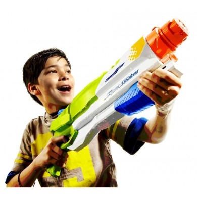 This big drencher can hold up to 2.4ltrs of water, and it's easy to pump and fire. Turn the nozzle to 1 of 3 soaking modes so you can choose just how to soak your target. You'll get a huge stream in Flood mode, or the ability to hit multiple targets in Scatter mode. But if you need to hit targets up to 38 feet away, it's Distance mode you want! Nobody will stand against you when you come armed with the Barrage soaker!
