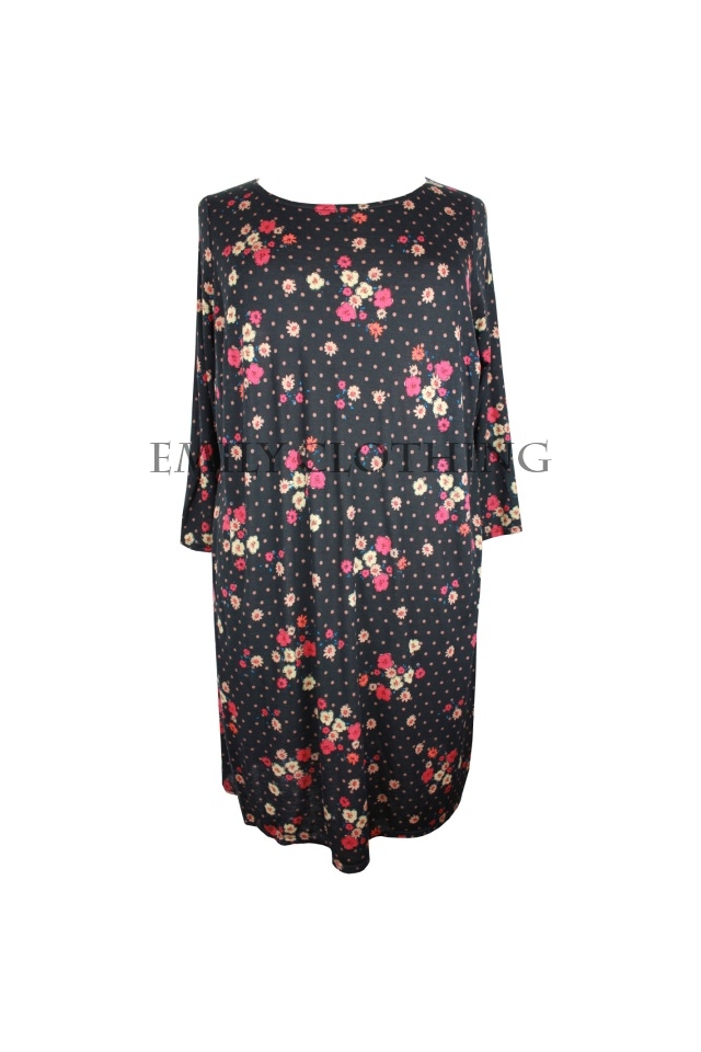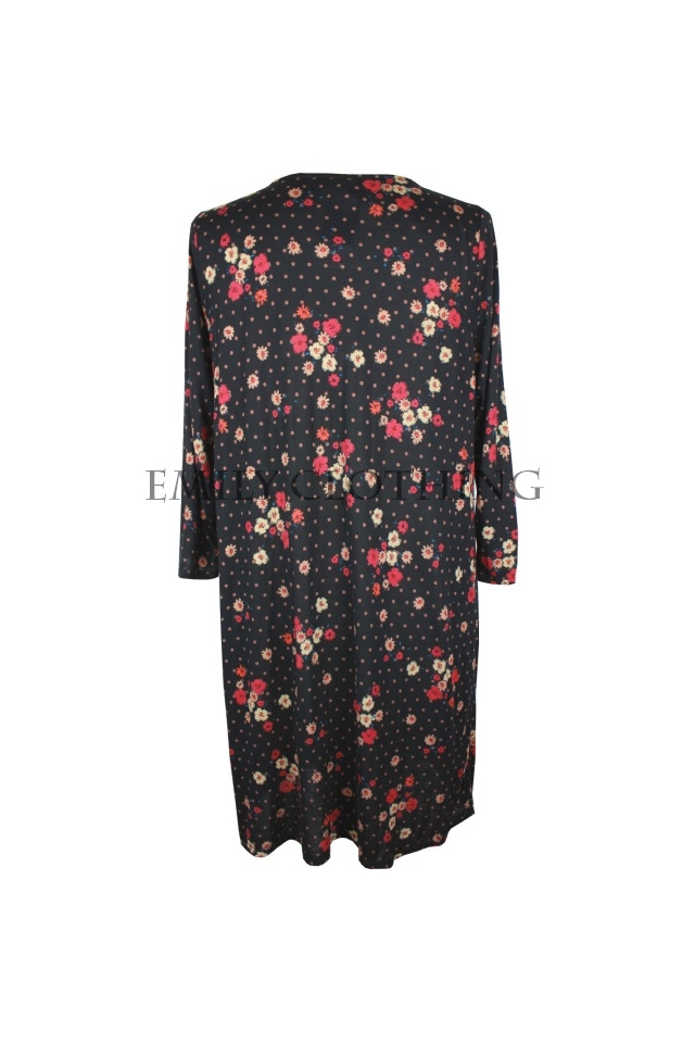 This tunic features: round neckline at the front and 3/4 length sleeves. Length from the shoulder to the hem measures approx. 93 cm.