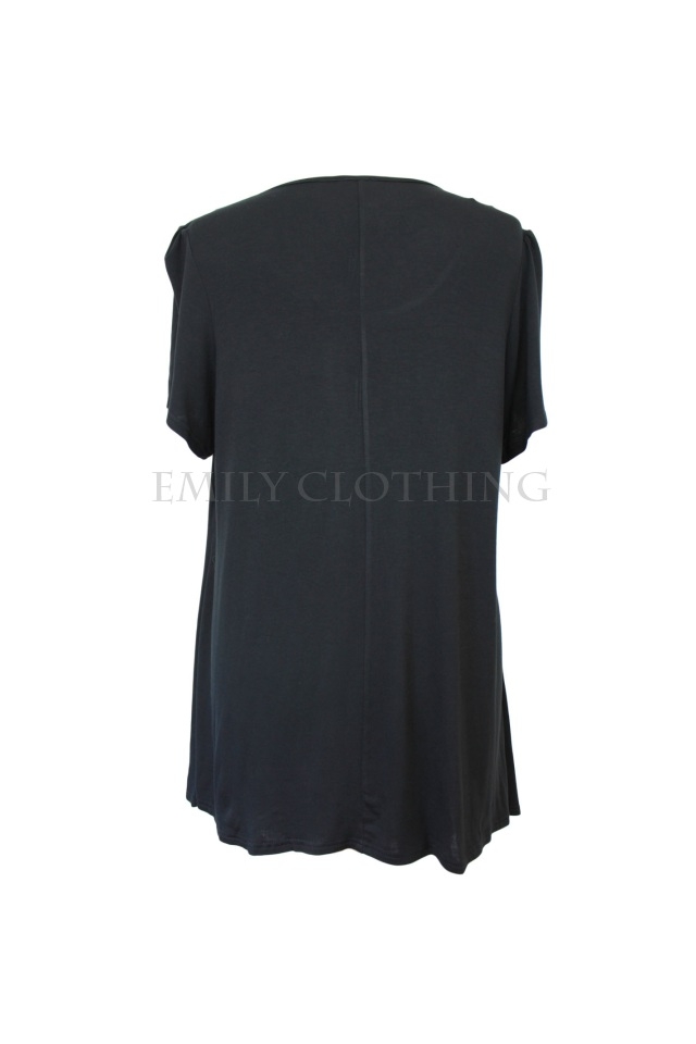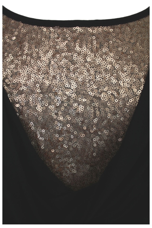 This tunic features: cowl neckline with sequin insert detailing at the front, short sleeves. Length from the shoulder to the hem measures approx. 87 cm.