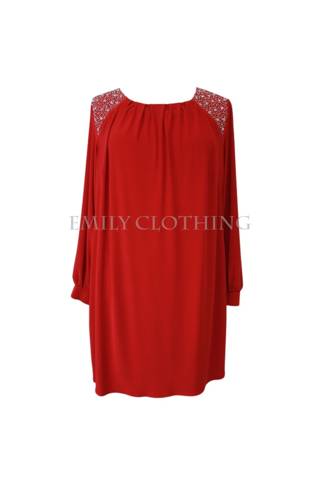 This tunic features: round neckline at the front, jewelled detailing at the shoulders and long length sleeves with button fastening cuffs. Length from the shoulder to the hem measures approx. 92 cm.